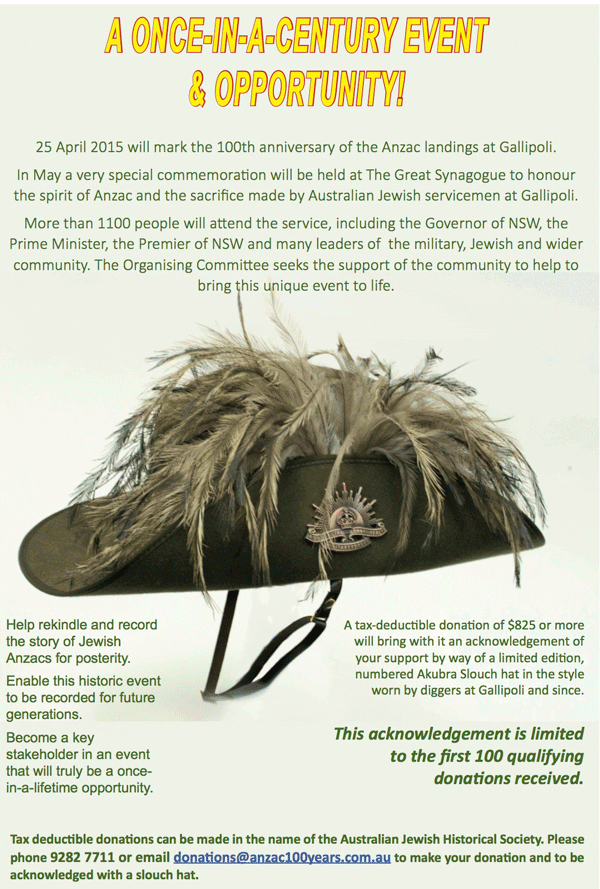 With less the two weeks to go before Sydney’s Jewish Community gathers to commemorate and honour our ANZAC diggers, the Event Organising Committee is already assured a huge turn-out.