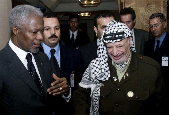U.N. Secretary-General Kofi Annan meets with PLO chairman Yasser Arafat during the U.N. Racism World Conference in Durban in 2001. Credit: United Nations