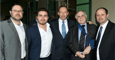 Gareth Narunsky [AJN, Evan Zlatkis [AJN, Prime Minister Tony Abbott, Henry Benjamin [J-Wire] Noel Kessel [AJN]