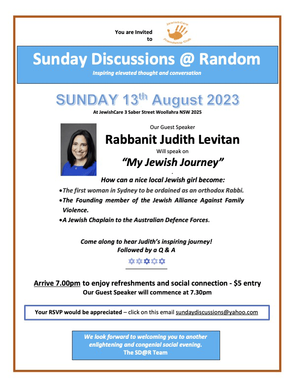 Sunday Discussions @ Random hosts Rabbanit Judith Levitan.