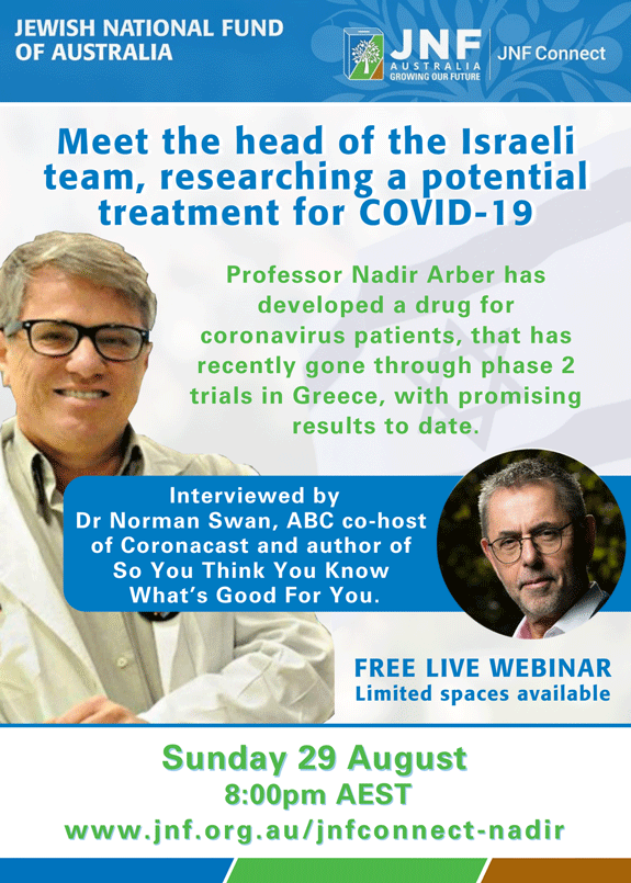 Aug-29 8pm zoom: Dr Norman Swan talks to the head of the Israel team searching for a COVID treatment