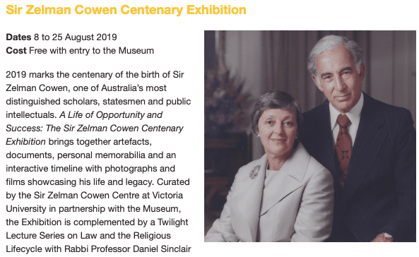 Aug-8 ~ Aug-25 Melbourne: Sir Zelman Cowen Centenary Exhibition
