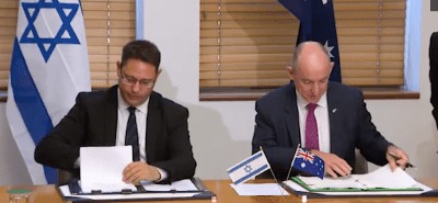The treaty was signed in Canberra by Stuart Robert and Israel’s Deputy Ambassador to Australia Ron Gerstenfeld.