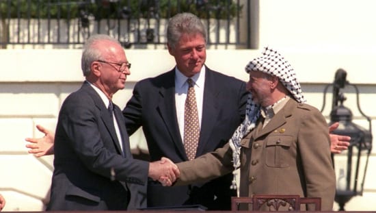 The handshake with Yasser Arafat on the White House lawn. Avi Ohayon, The National Photo Collection of Israel, Government Press Office. Images courtesy of Israeli government photo archive unityexhibition.com
