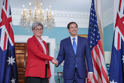 U.S. Secretary of State Marco Rubio meets with Australian Foreign Minister Penny Wong at the U.S. State Department on July 1, 2025. Credit: Freddie Everett/State Department.