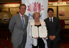 Jewish communal leader and inter-faith activist, Mrs Josie Lacey received the Premier’s inaugural Lifetime Community Service award. She received the award from Premier Barry O’Farrell; Communities Minister Vic Dominello and Community Relations Commissioner Stepan Kerkyasharian.