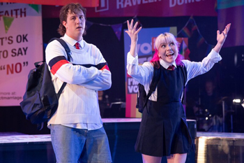 The set is a technicolour dream coat, reflecting the political campaign and impending vote on gay rights.