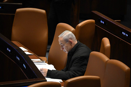 Prime Minister Benjamin Netanyahu sits alone ahead of a Knesset meeting on Dec. 25, 2023. Photo by Yoav Dudkevitch/TPS