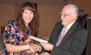 She was presented with the scholarship by Dr Paul Gardner, the chairman of trustees, at a reception held at the Adele Southwick Centre on Sunday evening.