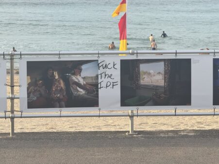 Antisemitic graffiti on the HeadOn photo exhibition at Bondi Beach 29-11-25 (Arsen Ostrovsky via X)