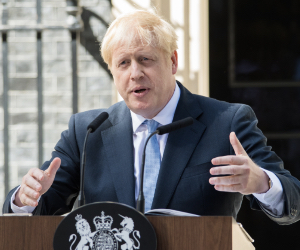 British Prime Minister Boris Johnson delivers a speech outside 10 Downing Street in 2019. Credit: Michael Tubi/Shutterstock.
