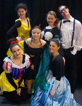 HSC drama students Tamar Hoffman, Dalia Gencher, Hannah Lee, Sam Nathan, Deena Metz and Amy Shapiro performing in In a land not so far far away.