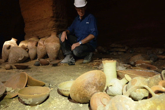 Archaeologists from the Israel Antiquities Authority (IAA) were called to the site and descended the ladder into an amazing space that seemed frozen in time. Dozens of whole pottery and bronze vessels were laid out, just as they were placed during the burial ceremony. The vessels were offerings buried with the dead in the belief that they would be used by them in the next world.
