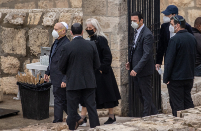 Dr. Miriam Adelson, wife of businessman and philanthropist Sheldon Adelson, arrives at her husband’s funeral in the Mount of Olives in Jerusalem on Jan. 15, 2021. Photo by Yonatan Sindel/Flash90.