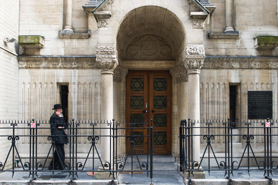 An Orthodox Jewish man outside a synagogue in the Jewish Quarter in Antwerp, Belgium, on Dec. 9, 2014. Photo by Johanna Geron/Flash90
