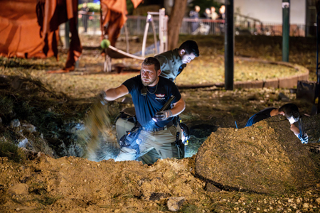 Israelis in Jaffa clean up debris from a Houthi missile strike on Dec. 21, 2024. Photo by Ari Shalom/TPS-IL