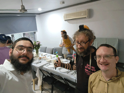Over 2,000 kilometres north, Chabad of RARA’s third group was hard at work. Menachem Manssouri, together with Mendel Junik, were visiting a region that had never before been visited by Chabad of RARA. Starting in Darwin, the rabbis hosted a Shabbos that was attended by more than 20 locals. It was an evening of L’chaims, Divrei Torah, and lots and lots of laughter.