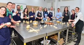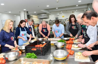 Following the briefing, the nine donned aprons and headed to the kitchen workbenches where they prepared vegetables.