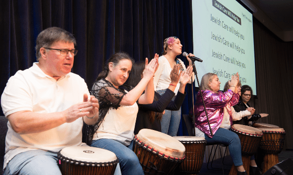 Talented 17-year-old performer, Amira Susskind, performed a moving rendition of ‘You Raise Me Up’ and was joined on stage for a special drumming performance of ‘We Will Rock You’ by an ensemble of Jewish Care staff, volunteers, and clients.