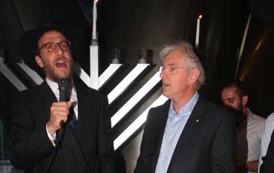 The Westfield city site is situated in close proximity to Martin Place, the scene of this week’s tragic siege. The Central Synagogue’s Rabbi Levi Wolff told J-Wire: “We expected a small crowd of young adults but the venue was packed with people of all ages. We held a minute’s silence in memory of the victims of the siege. Westfield’s Steven Lowy lit the Menorah at the event at which the local The Great Synagogue was represented by its president Justice Stephen Rothman. Rabbi Wolff addressed the gathering. He added: “The special moment for me was the singing of Moah Tsur. This normally happy cheerful celebratory song was sung in a mellow and almost sad way as the events of the week permeated the thoughts of all. But the spirit of Chanukah took over uplifting all who attended and the Chanukah lights shone in a location close to where Sydney has experienced its darkest hour.”