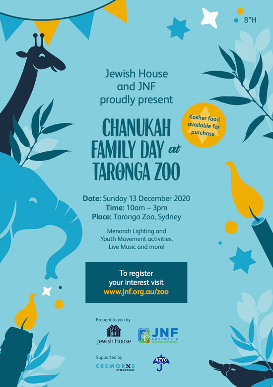 Jewish House & JNF NSW have partnered up with Taronga Zoo in Sydney to produce an exciting family day out in celebration of Chanukah, this Sunday, 13th December.