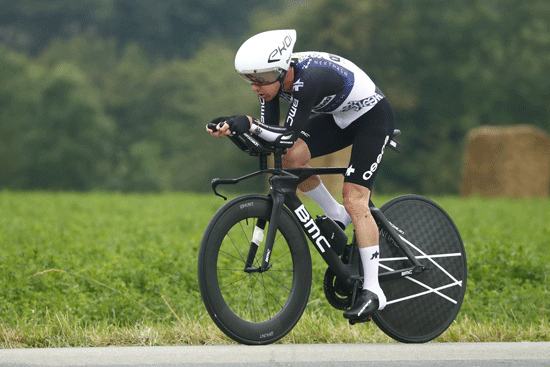 Australian rider Simon Clarke of Team Qhubeka Nexthash in action during the 5th stage of the Tour de France 2021, an individual time trial over 27.2 km from Change to Laval Espace Mayenne, France, 30 June 2021. EPA/GUILLAUME HORCAJUELO