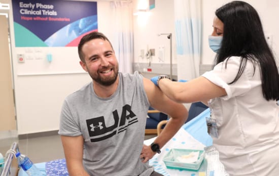 The first Israeli SARS-CoV-2 vaccine was administered at Sheba Medical Center at Tel Hashomer in Ramat Gan on Sunday to the first volunteer in a clinical trial.