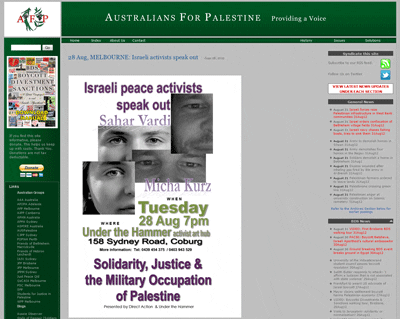 The Australians for Palestine promotion was headed – “Israeli peace activists speak out” and featured the 2 Israelis which also included the following descriptions on the promotional leaflet: