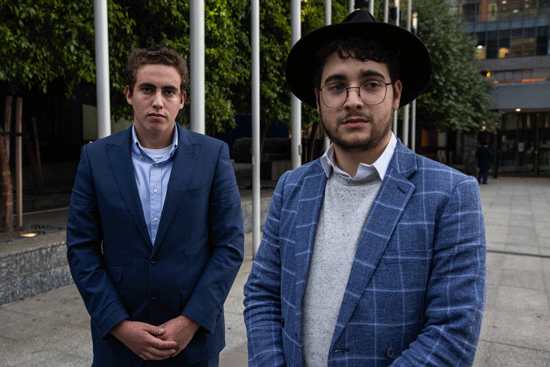 Matthew Kaplan (right) and Liam Arnold-Levy outside the Federal Court of Australia, in Melbourne Photo: Diego Fedele AAP