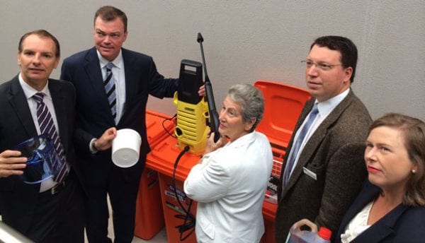 The Victorian Minister for Crime Prevention, Edward O’Donohue has presented graffiti removal kits to the Jewish Community Council of Victoria (JCCV), the B’nai B’rith Anti-Defamation Commission (ADC) and the Community Security Group (CSG).