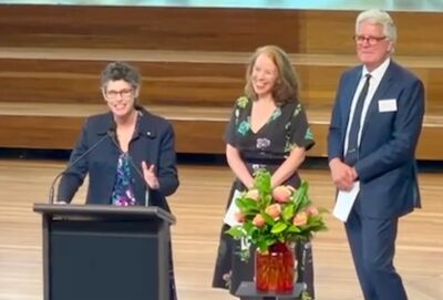 Deborah Conway receiving the Melbourne Civic Choice Award (screenshot)