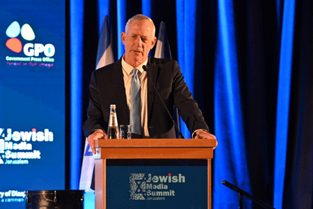 Benny Gantz addresses the Jewish Media Summit Photo: Ariel Hermoni/Israel Ministry of Defence.