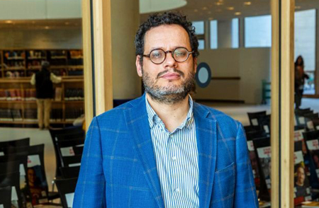 Dr. Chaim Neria, a curator at The National Library of Israel, is archiving material associated with Hamas’s October 7 attacks. Photo by Elad Zagman/TPS