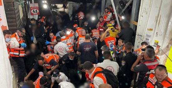 CEO of United Hatzalah Eli Pollack, who ran the on-site dispatch center during the incident said that “this is a very tragic and unusual incident that sadly cost many people their lives. Dozens of our volunteers performed CPR on the victims who were crushed, while others treated more than 100 people who were injured with varying degrees of severity. Our ambulance teams transported the injured to Ziv Hospital in Tzefat, Rambam Hospital in Haifa, and the Galilee Medical Center in Nahariya.”