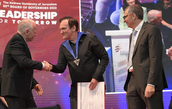 Filmmaker Quentin Tarantino received an honorary degree–“Doctor Philosophiae Honoris Causa”–from the Hebrew University of Jerusalem (HU) at a festive ceremony during the 85th Board of Governors (BOG) meeting.
