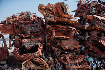 Moshav Tekuma, where cars wrecked during Hamas’ October 7 attack were towed, on Oct. 30, 2024. Photo by Sharon Leibel/TPS-IL
