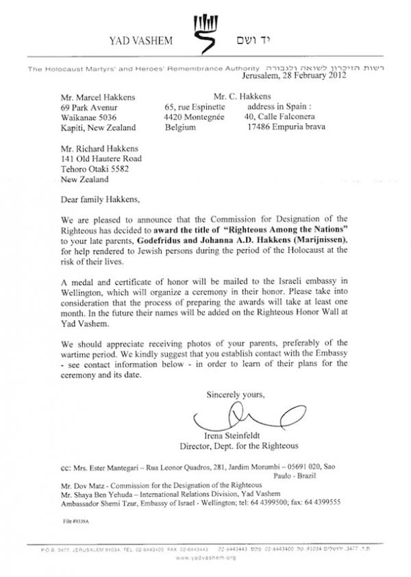 “I never doubted this positive outcome, especially after to talking to the people at Yad Vashem. It just shows that no act of kindness is ever forgotten or erased by time. Wonderful news indeed,” said Vera Egermayer the liaison officer of the Wellington Holocaust Centre.