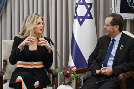 President Herzog thanked her for standing up and speaking out for Israel and said: “We followed you during this war as one with moral clarity. We are under this huge attack – endless attack – by people who don’t understand, who don’t get the picture. We are the ones who are fighting for the free world. We are the ones who are stopping this empire of evil. We’re at this for frontier of clash of civilization, of values, and we are to blame? And here comes somebody who has an opinion and moral clarity and we are very grateful.”
