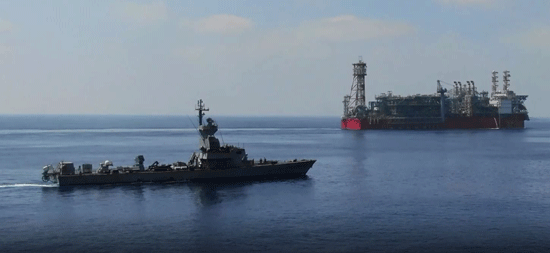 The Israeli Navy patrols near the Karish gas rig. (IDF) Jul-2