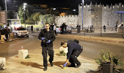 Police investigators at the site of a terror attack near Damascus Gate Photo by Shalev Shalom/TPS