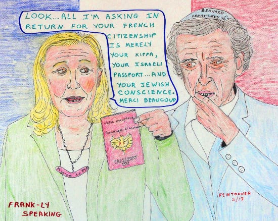 In his sights this week, is Marine Le Pen and Bernard-Henri Levy…