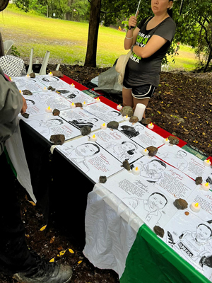 “There was a very big event in the tent with many speakers and Palestinian flags. There were a lot of people there. I was working so I couldn’t hear what they were saying but I could hear a lot of cheering and clapping from the crowd. That’s how it started after that they set up a stand with pictures of allegedly dead reporters in Gaza.