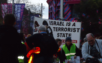 protest3 The Palestine Action Group (PAG), the organisers of the protest, were not gracious losers. Reverting to type, they complained of a vast, dark conspiracy to deny their right to protest. Shopworn tropes about a Jewish conspiracy were shamelessly aired on their news websites and social media.