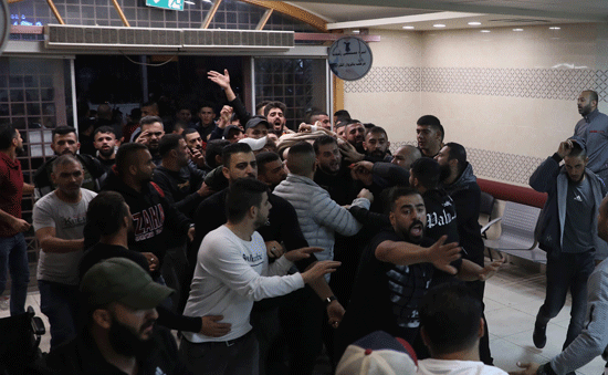 Palestinians carry the body of Wadee Al Hawah the top senior leader of the Palestinian Militia group Lion’s Den to Rafedya Hospital in the west bank city of Nablus, 25 October 2022. Photo: Alaa Badarneh/EPA