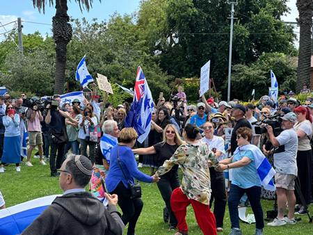 Hundreds waved Australian and Israeli flags, joining together to stand with the Adass community after the horrific arson attack.