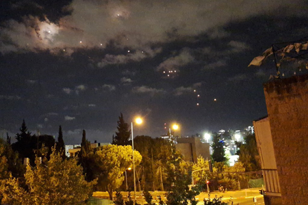 Missiles seen over Jerusalem during an Iranian barrage on Oct. 1, 2024. Photo by TPS-IL