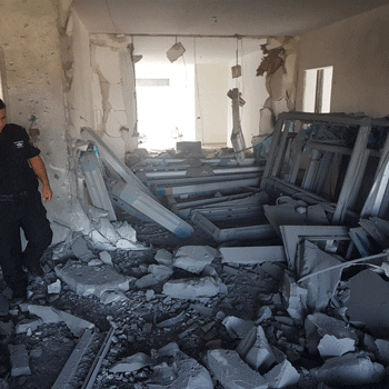 20:23 MDA Paramedic Alex Shamis told TPS, “We got calls from several locales in the city. I hurried on my moped to one of the incidents to treat a wounded man. When I arrived at the scene I met a 34-year-old man, fully consious, bleeding on his arms from having been struck by glass shards. We administered first aid and he was evacuated in light-to-moderate condition to a nearby hospital.
