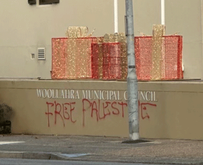 Graffiti featuring the words “Free Palestine” was spray painted on the wall in front of Sydney’s Woollahra Council Chambers last week.