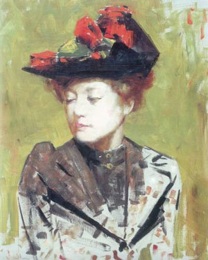 The family moved to Sydney around 1879, following Wolfe’s pawnbroking business being liquidated and in Sydney, he opened a general store at 713 George Street. The family settled at 48 Botany Road, Surry Hills. The family prospered and soon moved to Moore Park. The eldest daughter, Golda married an artist, Louis Abrahams, who had attended the Artisans School of Design in Carlton, where he met and befriended the pioneering Australian impressionist Frederick McCubbin. Both went to the National Gallery of Victoria Art School, where they befriended Tom Roberts. The three of them established the artists’ camp at Box Hill. Louis, together with his father, ran a cigar importing business in Lonsdale Street and Louis donated 183 cigar-box lids to the artists working at another artists’ camp – Eaglemont Camp – which was to be used principally by Tom Roberts, Arthur Steeton and Charles Conder in producing the paintings for the ground-breaking ‘’9 by 5 Impressionists Exhibition’’ of 1889 in Melbourne. The exhibition was stage-managed by Tom Roberts, who had painted a portrait of Louis Abrahams in Melbourne in 1886, and he went on to paint acompanion piece of his wife Golda in the year of their marriage, 1888. It was an exciting and important occasion when Lena, at the age of thirteen, met Tom Roberts at his older sister’s wedding, and in time Tom Roberts would work with Lena as his model in half a dozen paintings. He would have been struck by her character and looks – her special qualities, even as a young teenager.