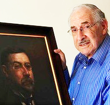 Graham de Vahl Davis with a portrait of Abraham